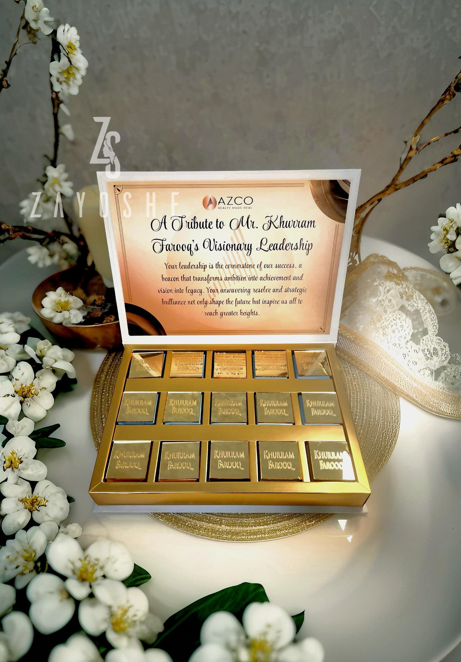 Personalized corporate chocolate gift is a refined, memorable way to thank clients, celebrate milestones, or reward teams. Each elegant box contains artisan wafer chocolates from Le Chocola arranged for maximum impact and can be customized with your company logo, recipient name and a short message. The packaging is crafted to look professional at boardroom and event settings, while individually wrapped bars keep freshness and presentation intact. Available in 15 or 30 bar options, this gift balances luxury and practicality — perfect for client outreach, conference giveaways, or employee recognition when you want your brand to be remembered.