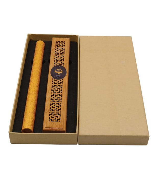 Arabic luxury gift box with Ribbon Wooden incense burner (bamboo). Each incense stick is immersed with a rich fragrance to soothe your senses and lighten your mood. Incense sticks give a relaxing mood to your environment when ignited, they offer a rich aroma.