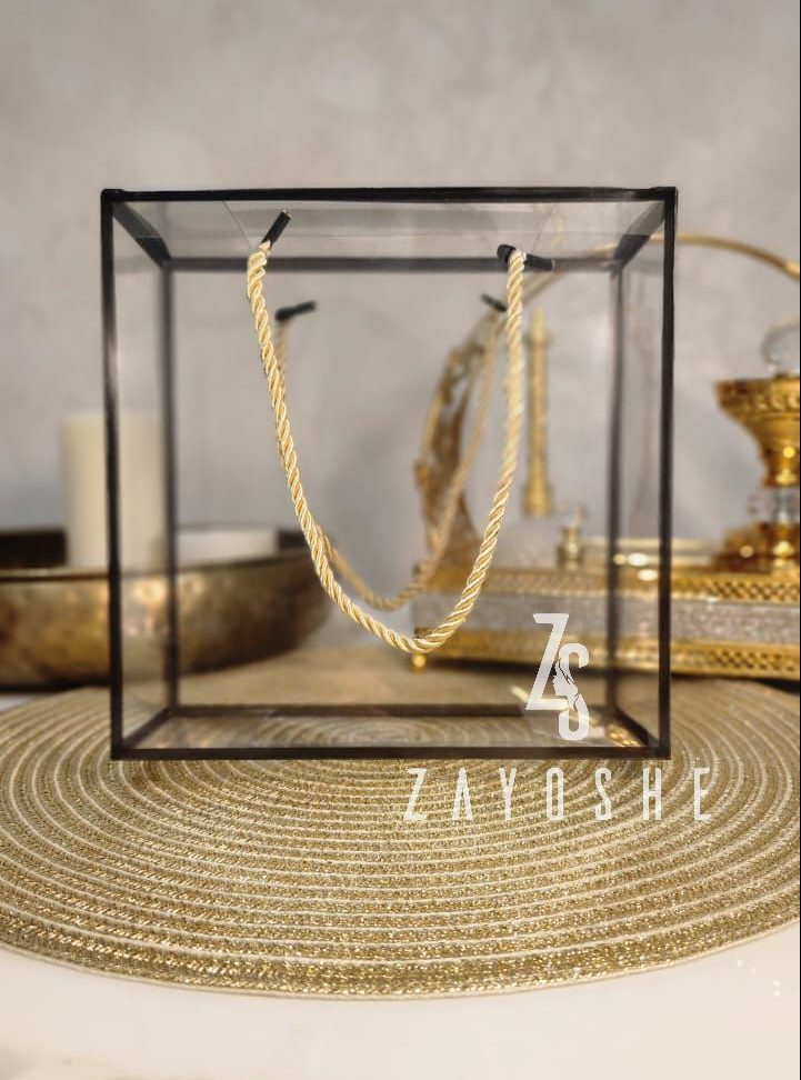 - Make your gifts truly special with the Transparent PVC Customized Hamper Bag with Black Border—a personalized and elegant packaging solution that adds a unique touch to any occasion.