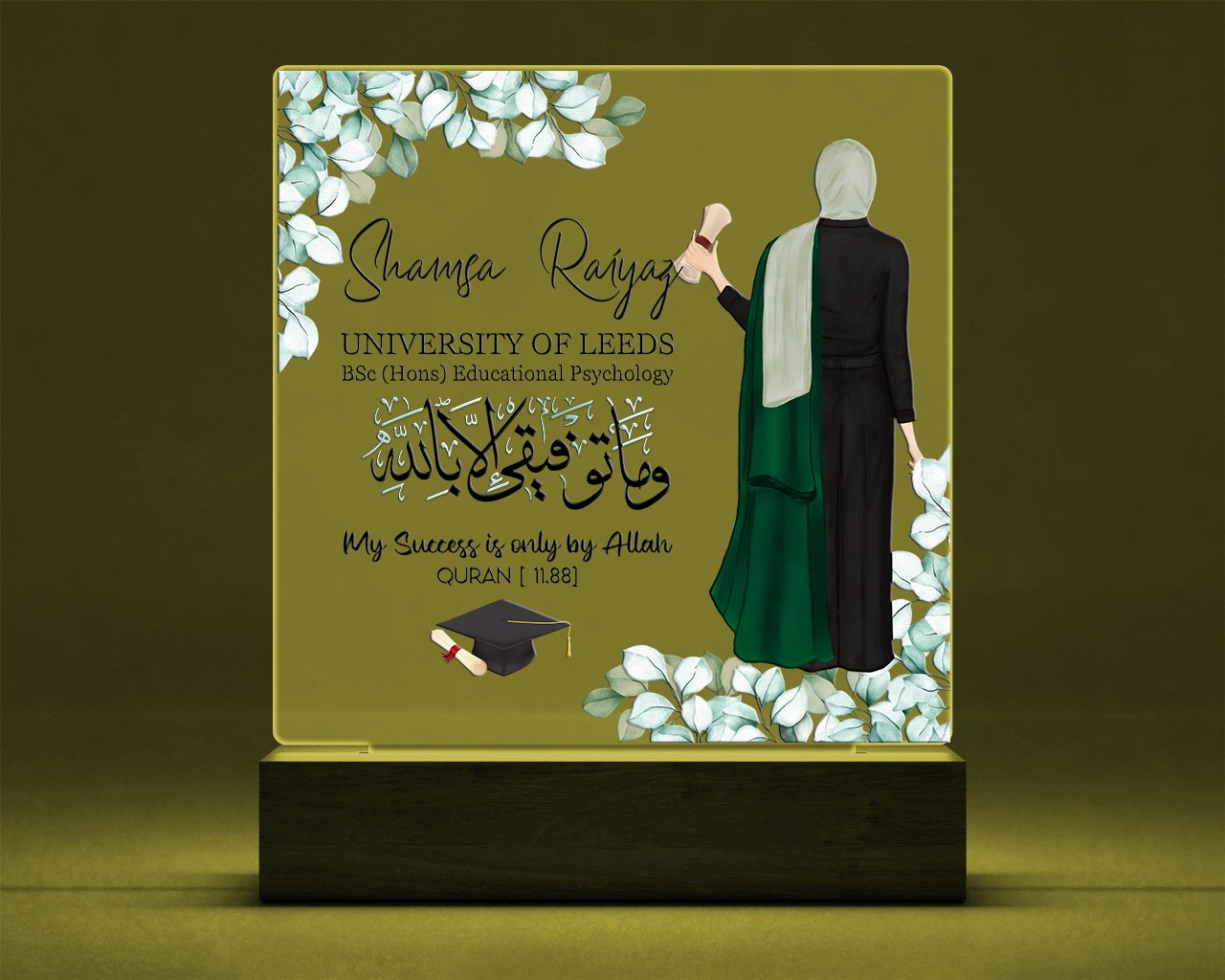 Customize the Graduation Gift Acrylic Night Light with the graduate’s name, graduation date, and a special message or quote.