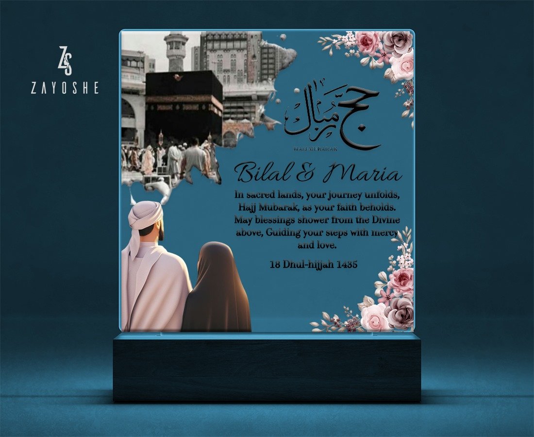 Perfect for adorning bedside tables, mantelpieces, or any sacred space within the home, this Personalized Acrylic Night Light Lamp For Couples serves as a constant reminder of the blessings of Hajj and the enduring power of love. With its energy-efficient LED technology and durable construction, it’s not just a gift for today but a radiant symbol of the couple’s enduring commitment to each other and their faith.