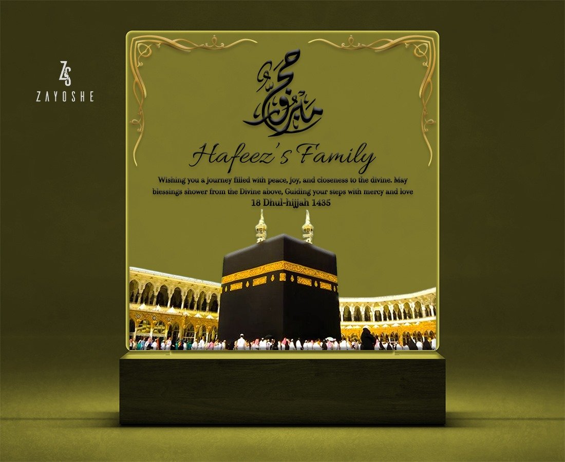 Celebrate the sacred journey of Hajj and the unity of family with our exquisite Personalized Acrylic Night Light Lamp For Family, designed to illuminate your home with love, faith, and togetherness.