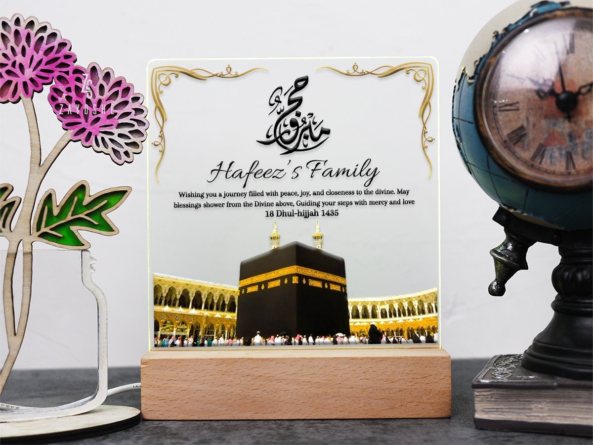 Whether presented to commemorate a milestone in your family’s spiritual journey or simply as a token of love and appreciation, this personalized lamp is sure to be treasured for years to come. Perfect for adorning bedside tables, mantelpieces, or any sacred space within your home, this Personalized Acrylic Night Light Lamp For Family serves as a constant reminder of the blessings of Hajj and the enduring bond of family.