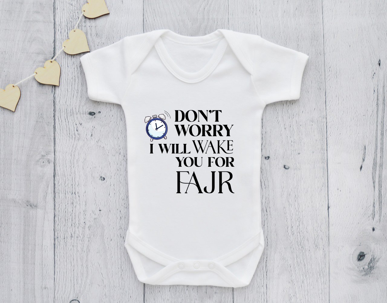 This “Don’t Worry, I Will Wake You For Fajr” Baby Romper makes an excellent gift for new parents, baby showers, or religious celebrations. Its thoughtful design and humorous message are sure to be appreciated by parents and loved ones alike, making it a memorable and cherished present.