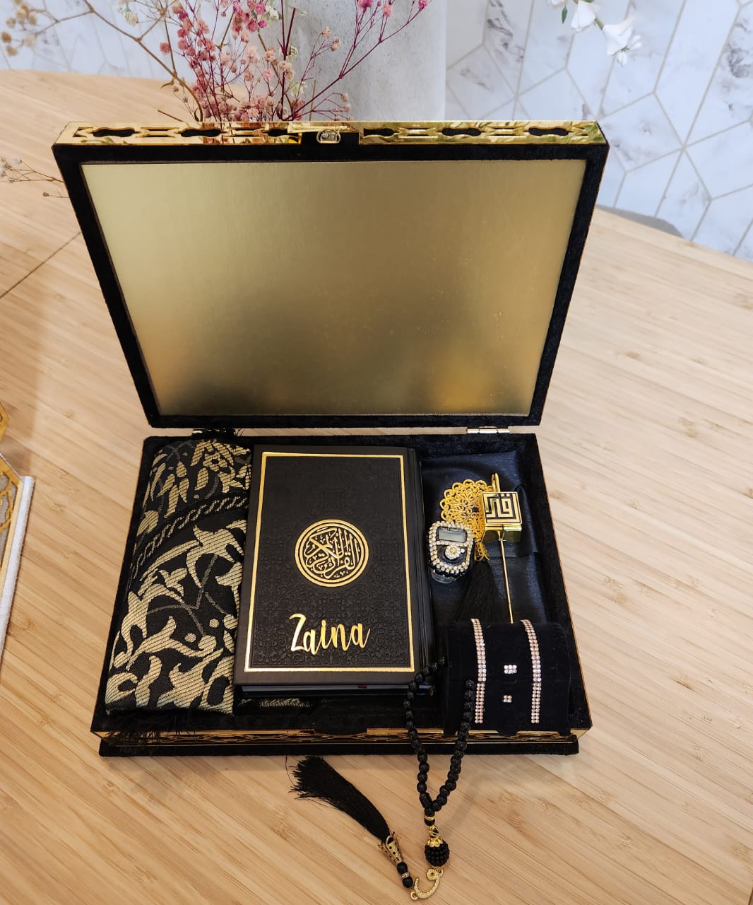Celebrate the special man in your life with the Exclusive Islamic Gift Set with Rainbow Quran for Him in Black. Order today and give a gift that symbolizes love, faith, and elegance.