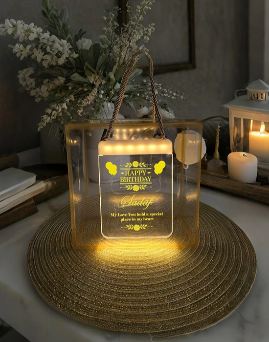 Light up their special day with the customized happy birthday lantern LED light gift hamper — a thoughtful, personalised celebration set that blends keepsake charm with usable decor. The hand-finished lantern casts a warm LED glow, while the curated hamper includes small treats and a customizable name or message to make the moment truly theirs. Perfect for bedrooms, desks or party tables, the lantern’s removable panels and USB-powered LED mean simple, safe use. Packaged neatly and ready to present, this hamper turns an ordinary birthday into a memorable, photogenic moment that keeps giving long after the candles are blown out.