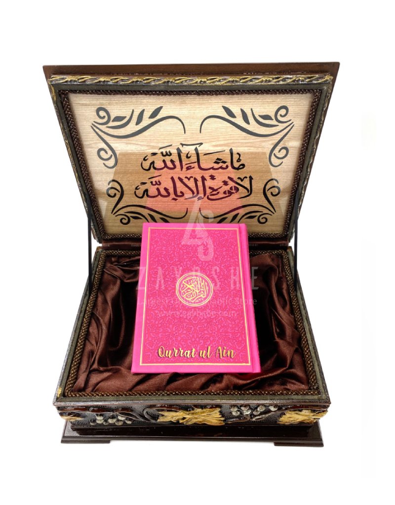 Wooden Quran Box + Dark Pink Rainbow Quran 14 * 20 cm