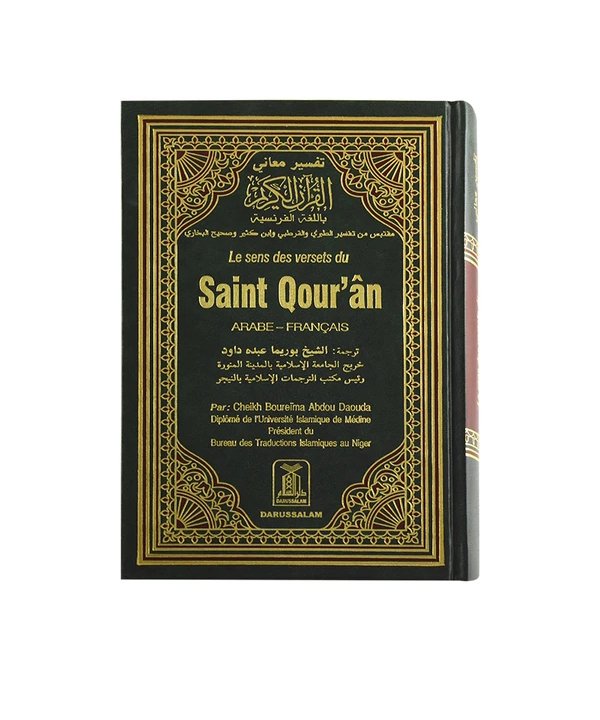 Interpretation of the meanings of the Noble Quran with Arabic text in the modern French language. A summarized version of At-Tabari, Al-Qurtubi and Ibn Kathir with comments from Sahih Al-Bukhari. This summarized 1 volume version offers brief commentary and Ahadith wherever necessary. This unique combination of commentary and relevant Ahadith makes this a very useful study reference tool. The Arabic text is taken from Mushaf al Madinah.
