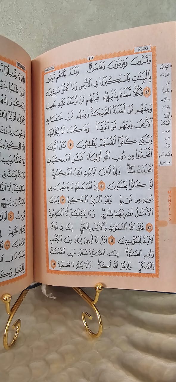 The Gaba Quran Kareem 15 Line / 4 Tajweed (15/4) is a beautifully designed edition of the Holy Quran, featuring the Indo-Pakistani script with a 4-color-coded Tajweed system to aid proper recitation. This edition is perfect for students, teachers, and general readers who wish to improve their Quranic pronunciation and fluency with the assistance of basic Tajweed rules.