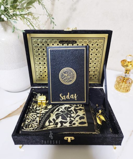 Introducing our Luxurious Islamic Gift Box with Personalization in Black, a meticulously crafted treasure designed to elevate your gift-giving experience. This exquisite gift box is filled with high-quality Islamic items that will be cherished for years to come, making it a perfect choice for any special occasion.