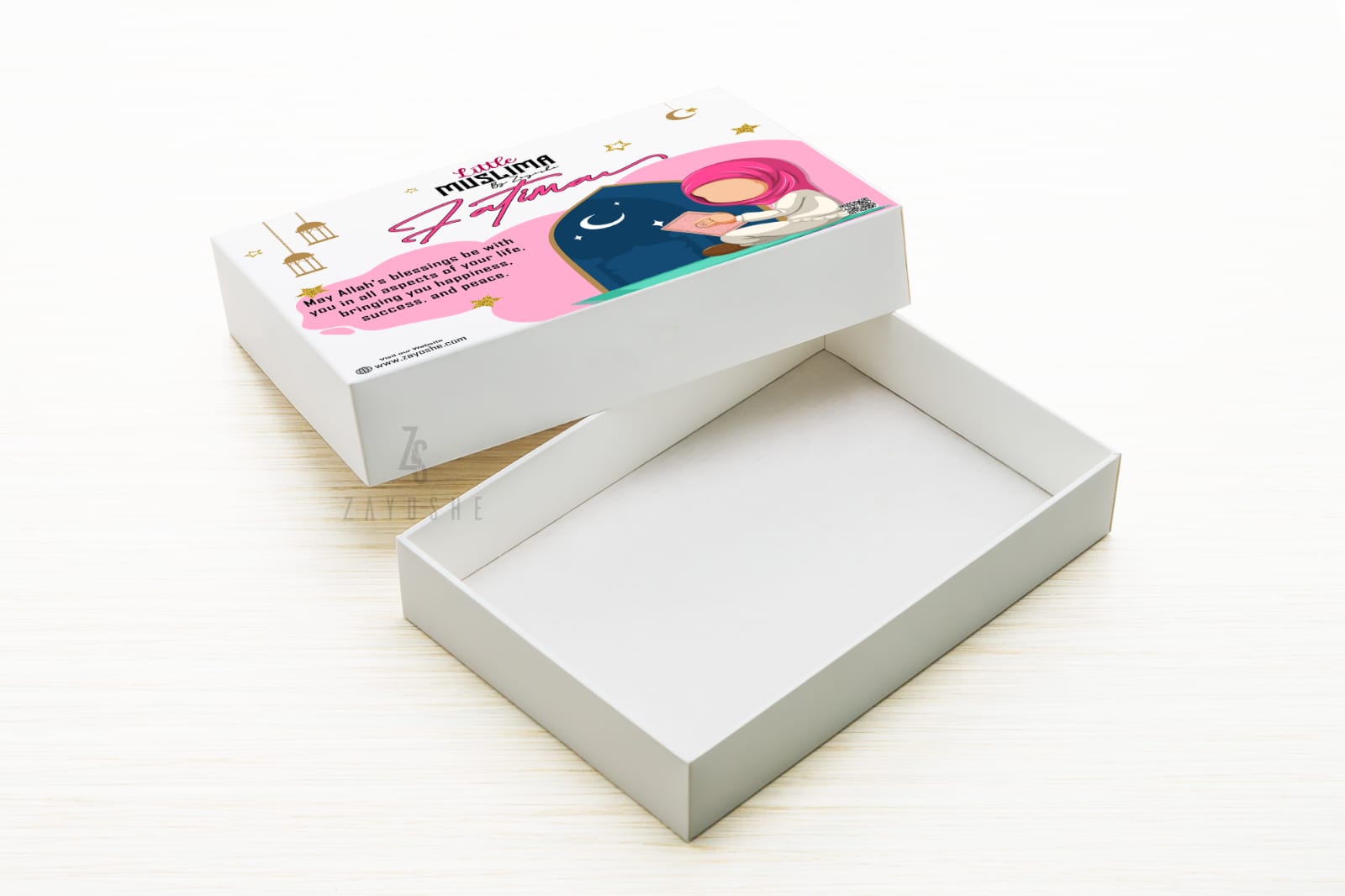 - Little Muslima Personalized Box (30*30 cm): A charming, personalized box to store all her special items, making her feel unique and loved.