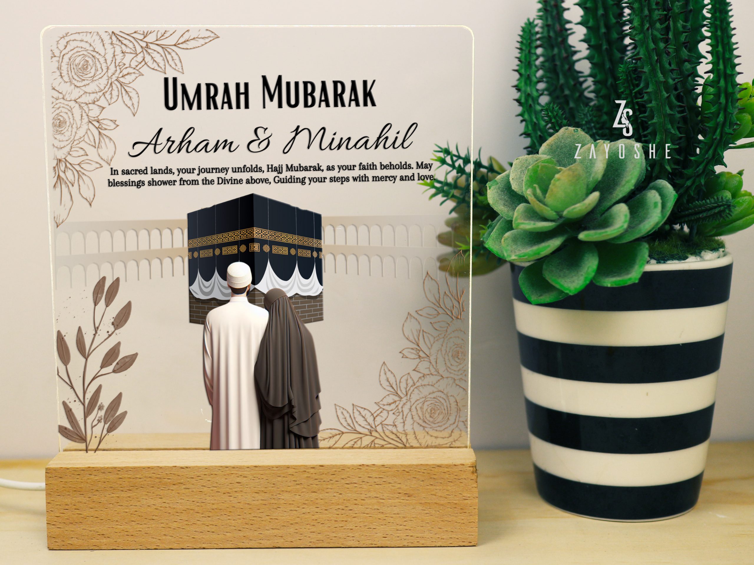 Illuminate the bond of love and faith with our Customized Umrah Gift Night Light for Couples. Perfectly designed to celebrate the sacred journey of Umrah, this elegant night light makes a thoughtful and sentimental gift for couples who have embarked on or are planning their spiritual pilgrimage together.