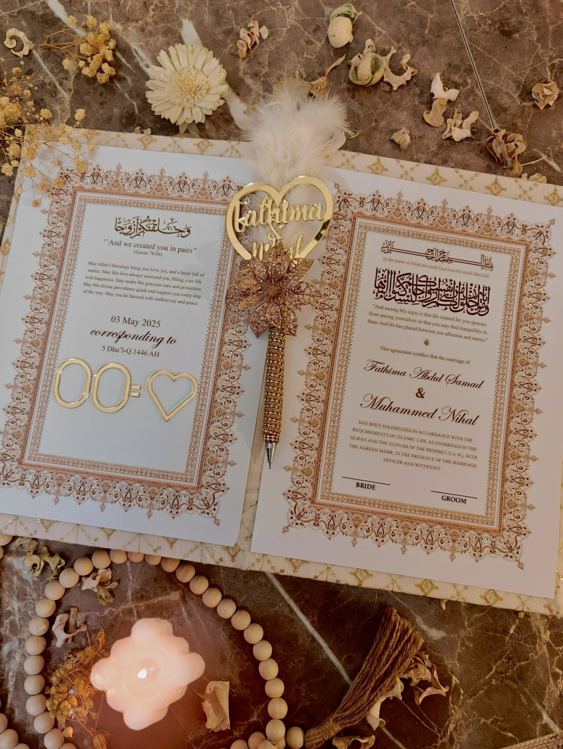 Elegant Nikkah Certificate with Customized Nikkah Pen-White