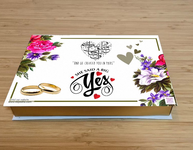 Delivery for the online “she said yes!” chocolate box is available across Dubai, with standard processing and shipping taking 3 to 4 days from order confirmation.